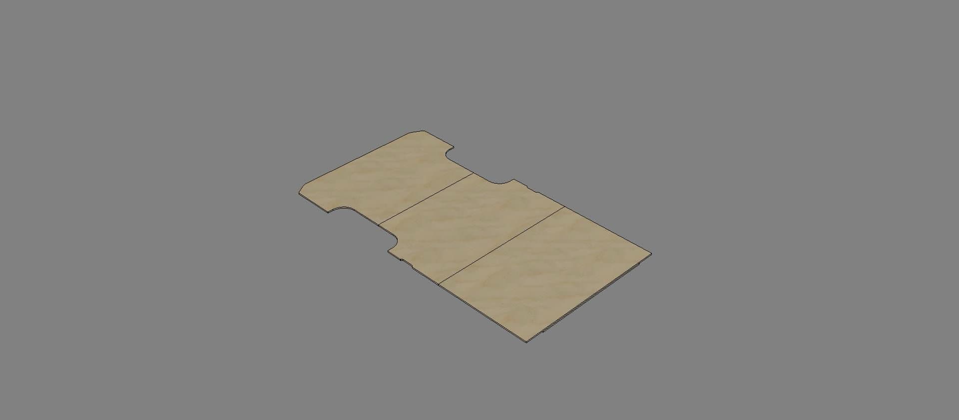 De vloer bestaat uit 3 grote delen, die samen de volledige vloer vormen en exact past. De onderliggende stroken (die ook exact op maat zijn) zijn inbegrepen in de prijs. De stroken gebruik je direct op de kale laadvloer.